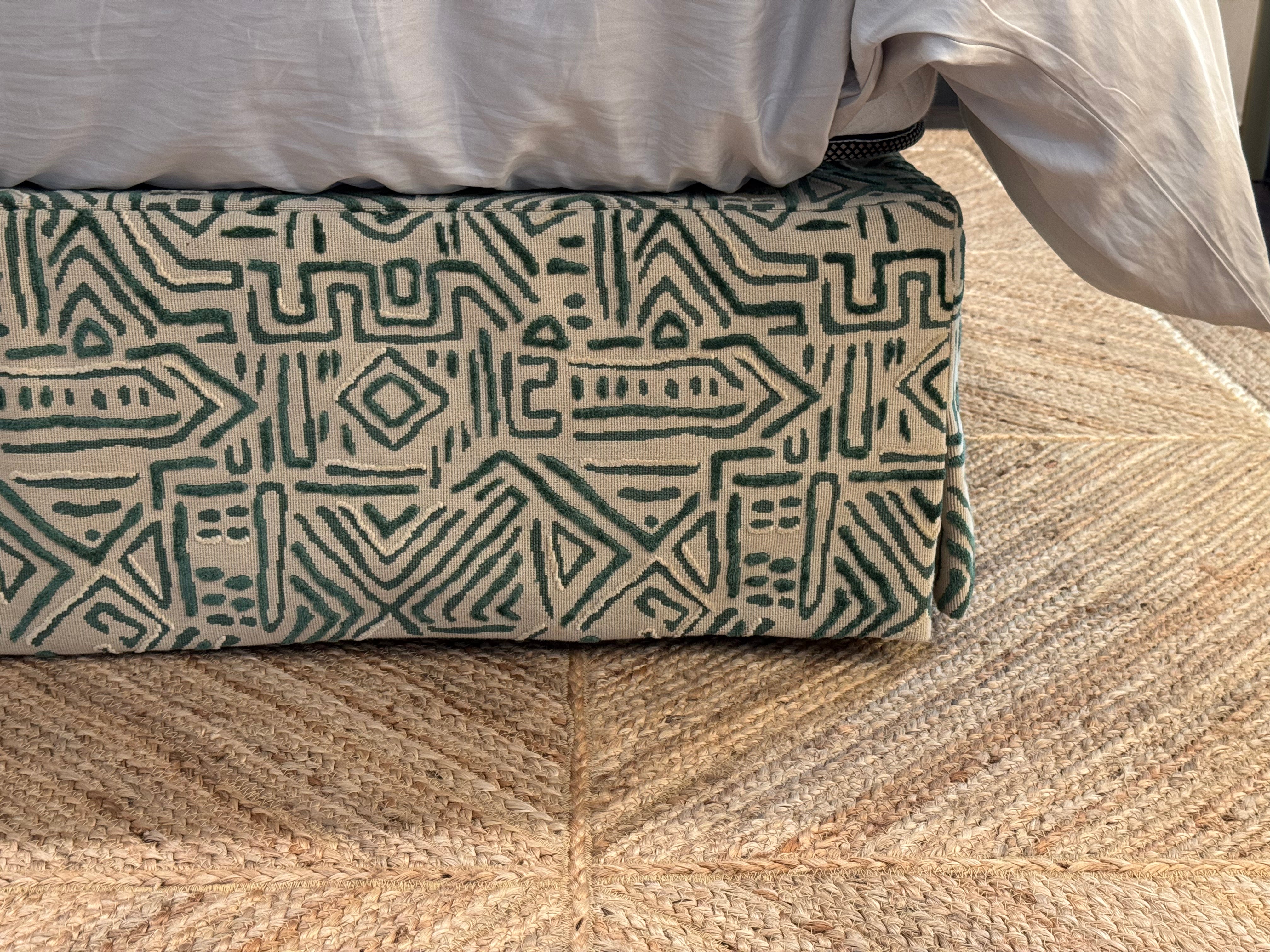Vollständig in den Niederlanden handgefertigt von erfahrenen Handwerkern und aus hochwertigen Stoffen gefertigt, bietet der Bettvolant eine maßgeschneiderte, elegante Passform, die über Jahre hinweg ihre Schönheit bewahrt.
